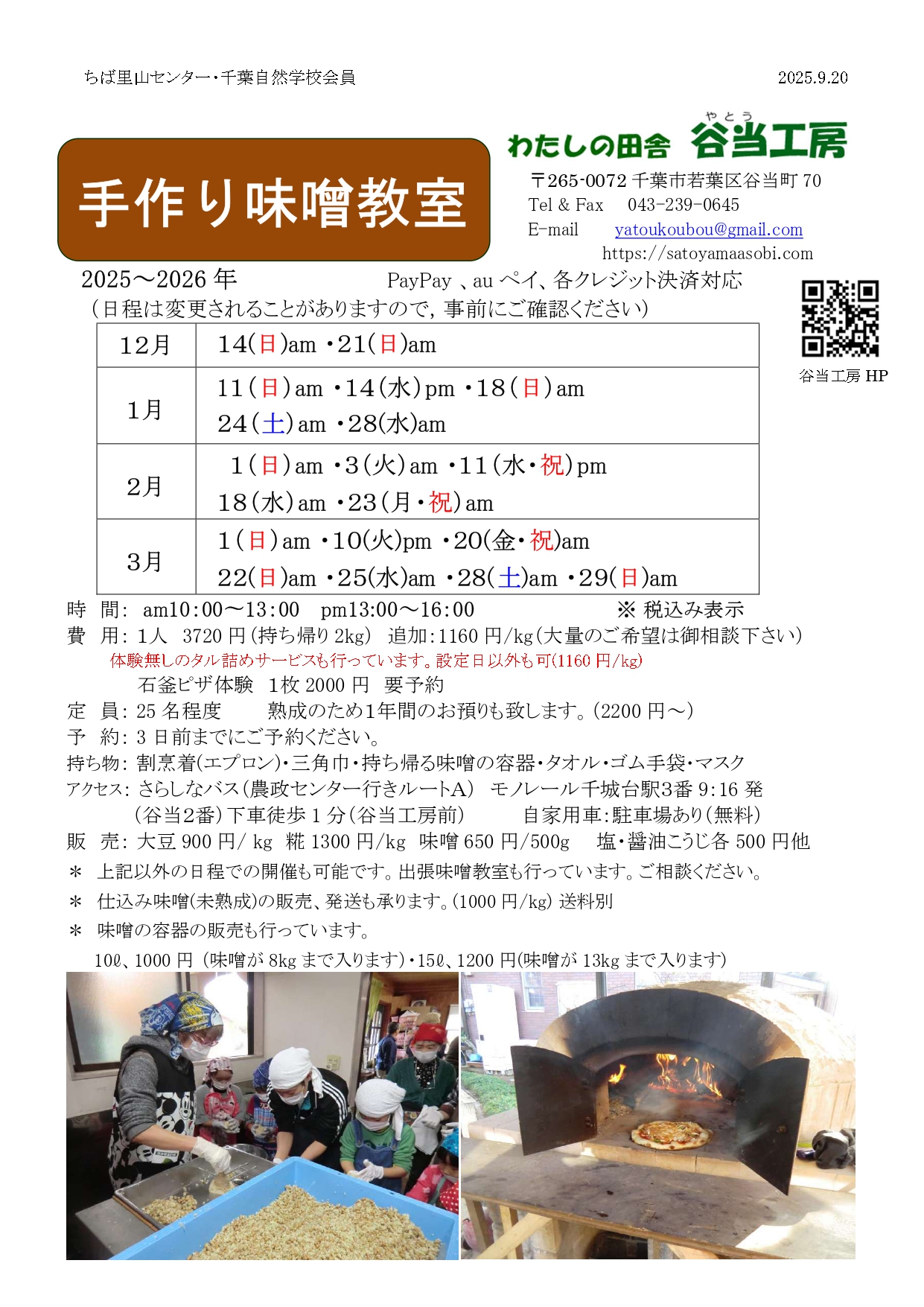 味噌ダル、重しの塩(販売有)をご持参ください。